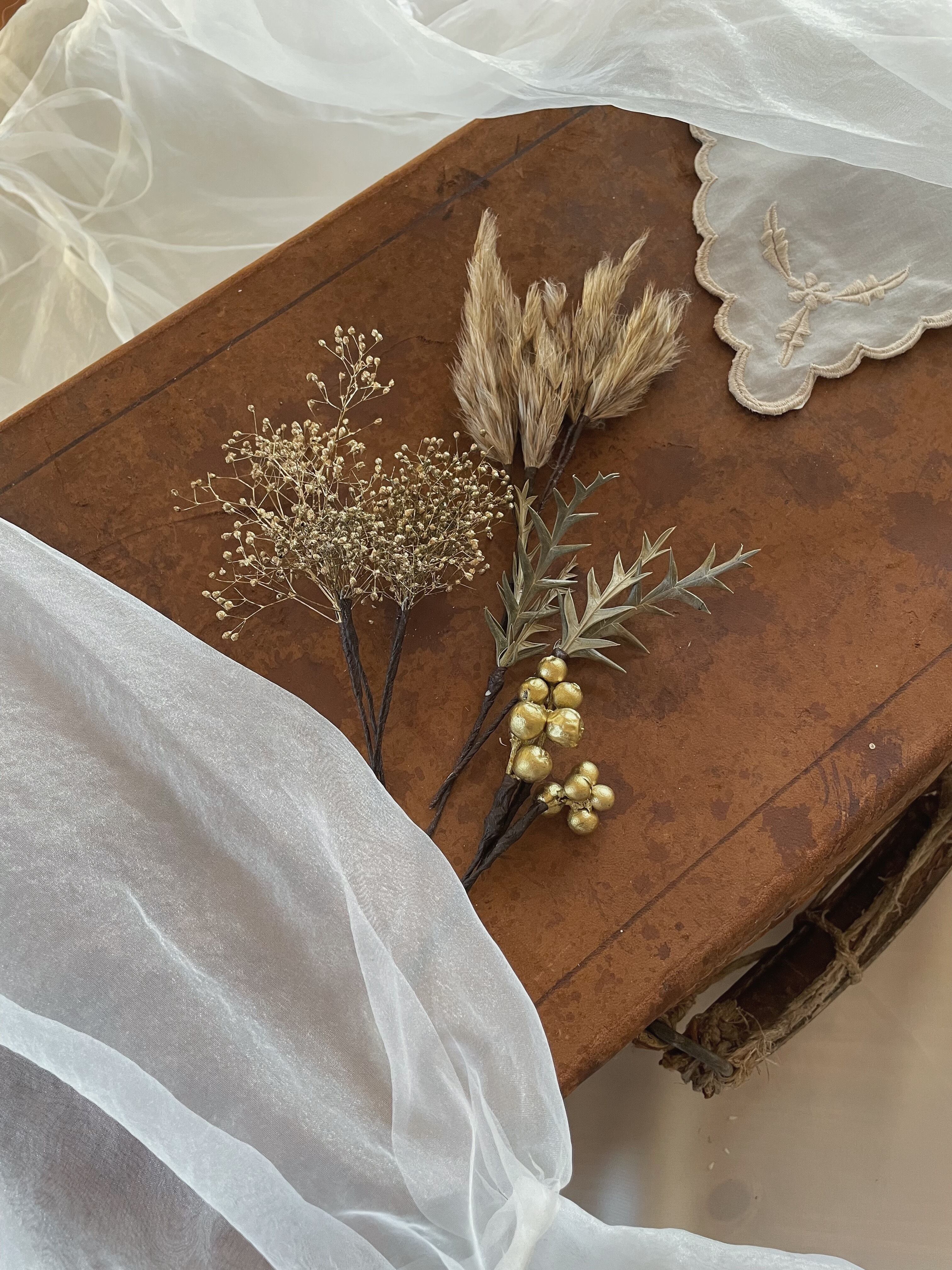 ドライフラワーを使用したヘッドパーツです。